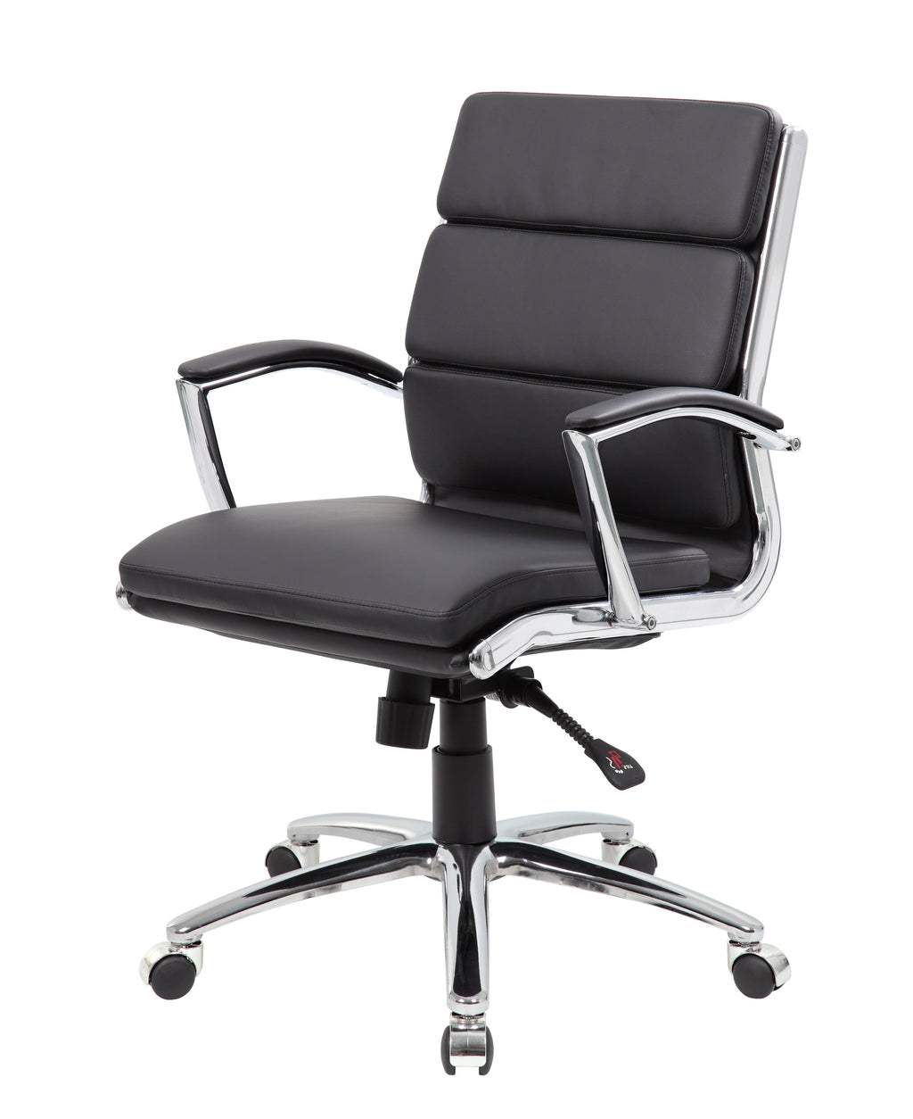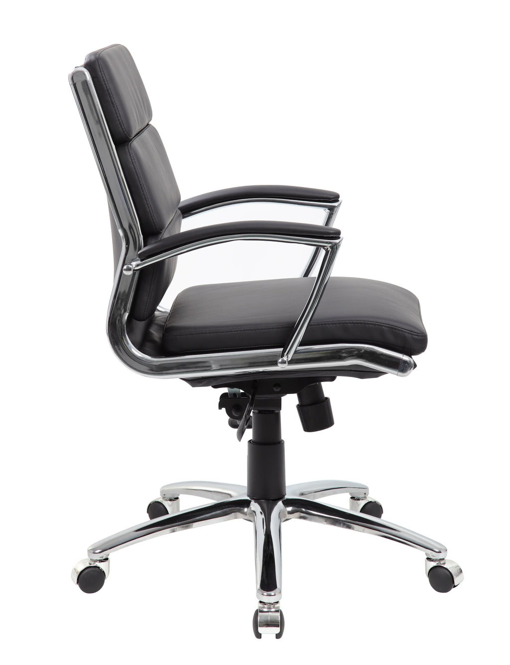 Boss Executive CaressoftPlus Chair with Metal Chrome Finish, Mid Back, Black (B9476-BK) Each