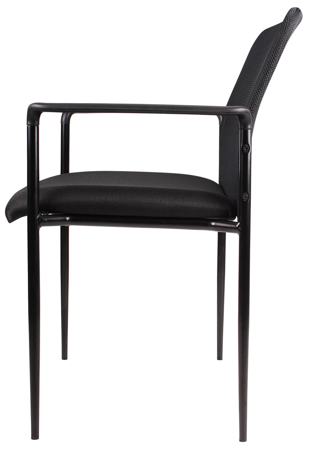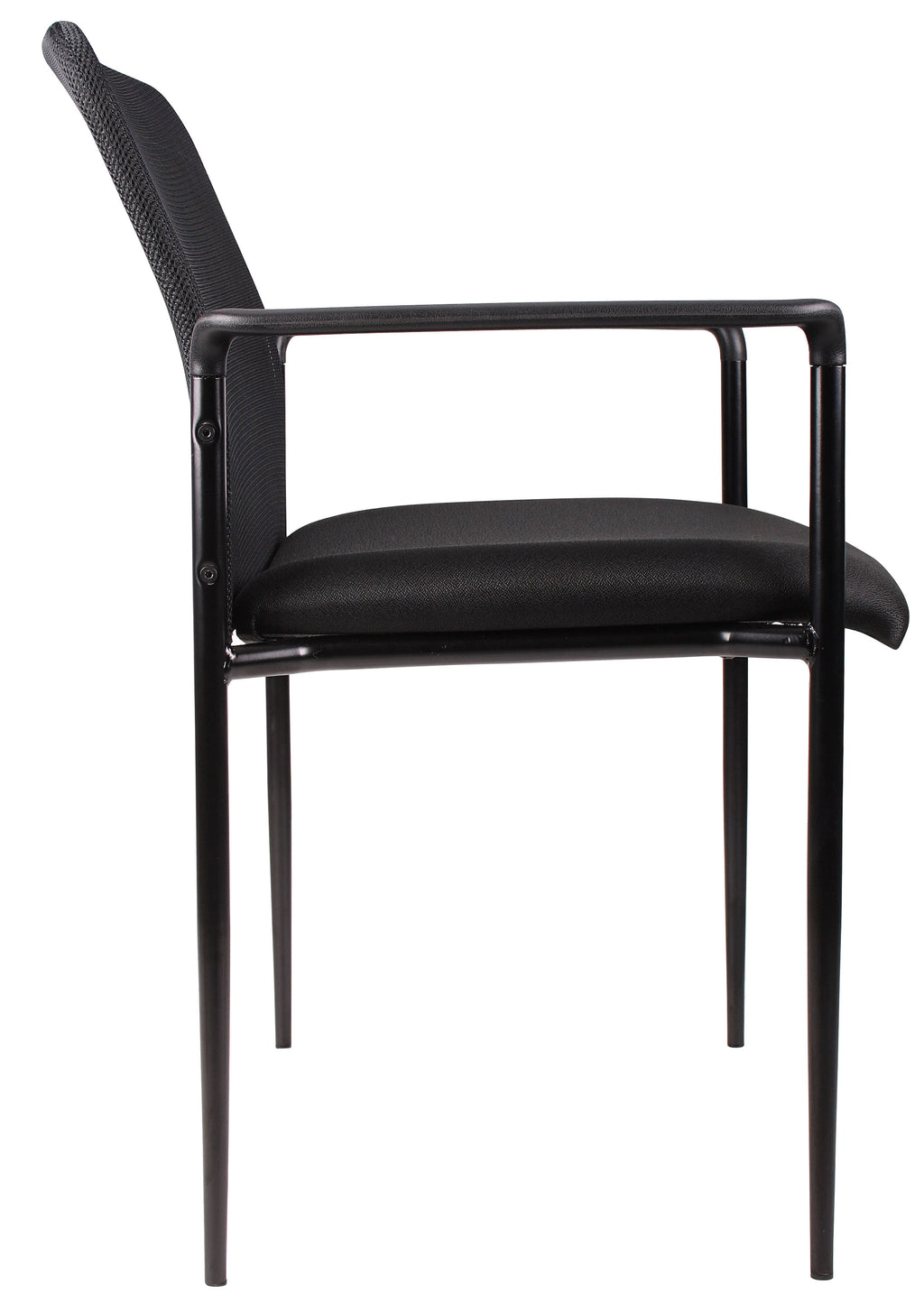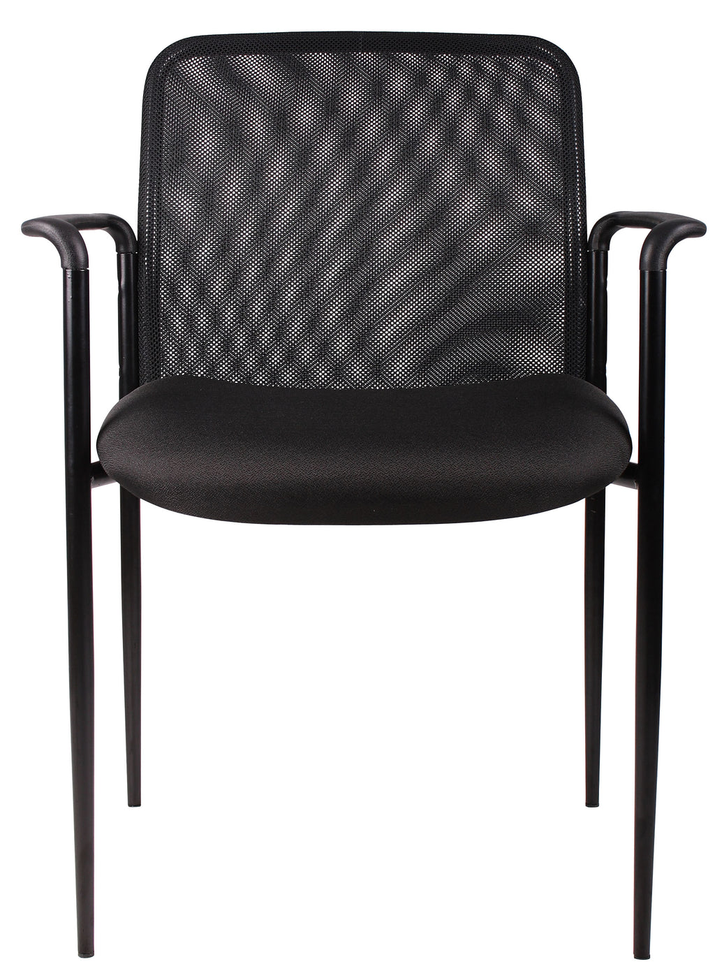 The stackable mesh guest chair in black is the perfect addition to any room or office. For smaller spaces, the chair can be stacked 4 high and stored away when not in use. The chair is at a fixed height with fixed arms and is designed with a mesh seat as well as a breathable, airy mesh back. The black chair adds a modern, professional appearance to any space and has a weight limit of 275 lbs.