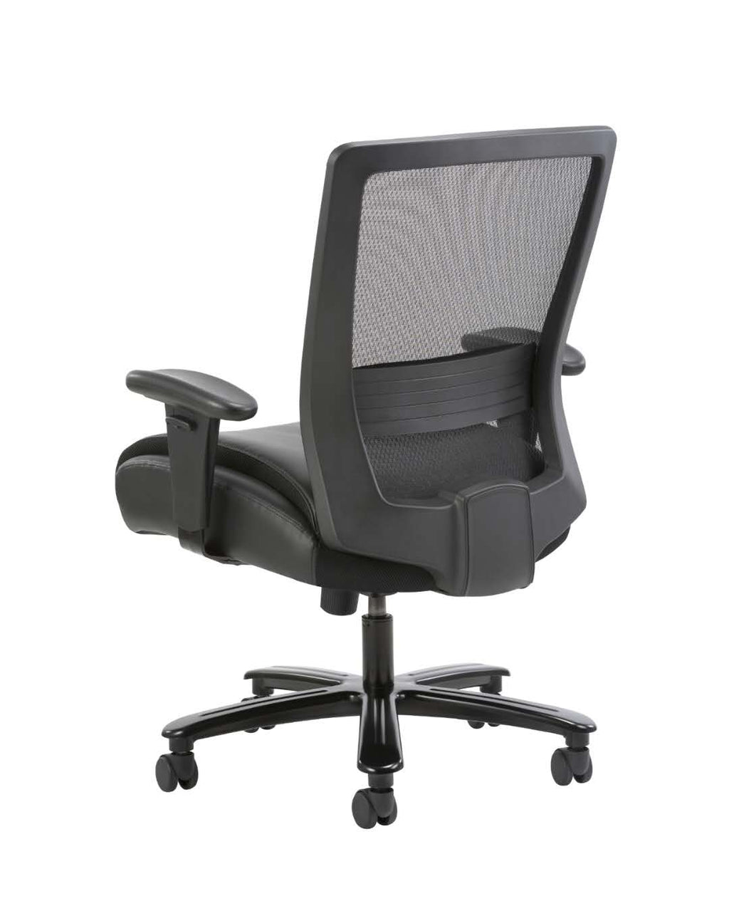 Our heavy duty mesh chair makes the perfect companion to any office, board room, or study. Its 400 pound weight capacity ensures a comfortable sitting experience with a broad range of body types. It’s seat is elegantly upholstered in leatherplus and features high density foam and spring pack construction for added comfort. The mesh back allows the cushion to breath with no moisture build up. It has height adjustable arms. The chair features pneumatic gas lift seat height adjustment, a heavy duty spring tilt mechanism, and tilt tension control. All of this sits atop a large 27� steel base with five large heavy duty casters.