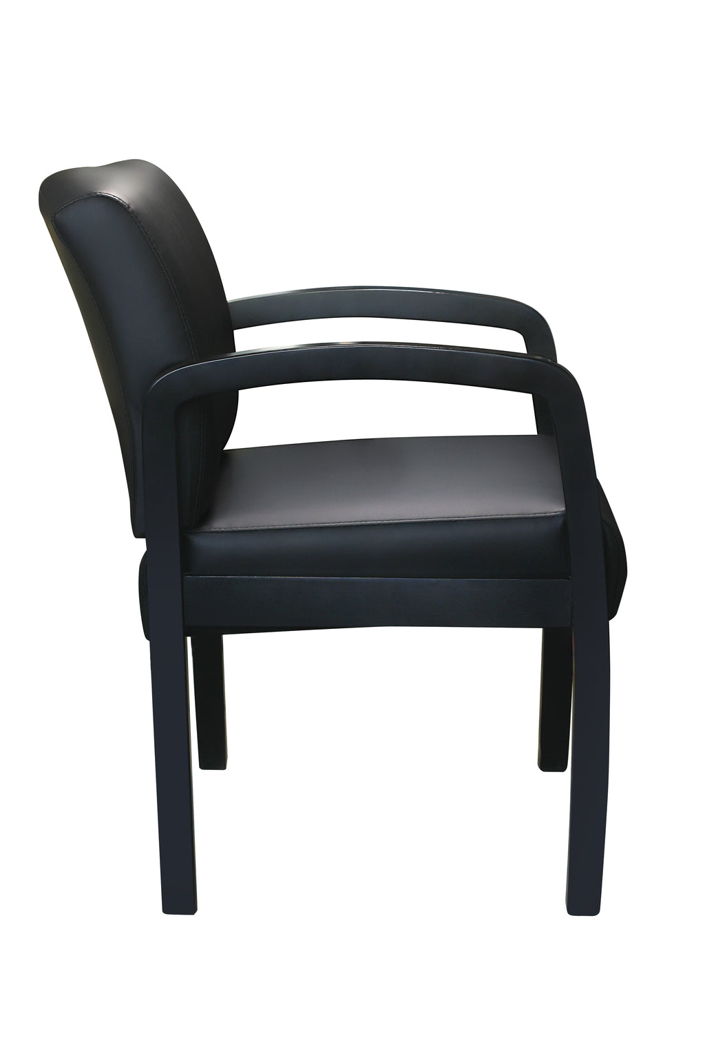 Our NTR guests chairs are the perfect seating solution for all your guests and visitors and will work well in any lobby, conference room, board room, or office. NTR stands for “no tools required�, meaning the unit can be assembled with your bare hands. In addition to an aesthetically pleasing black hardwood frame, it features thick padded back and seat cushions and black antimicrobial vinyl upholstery.