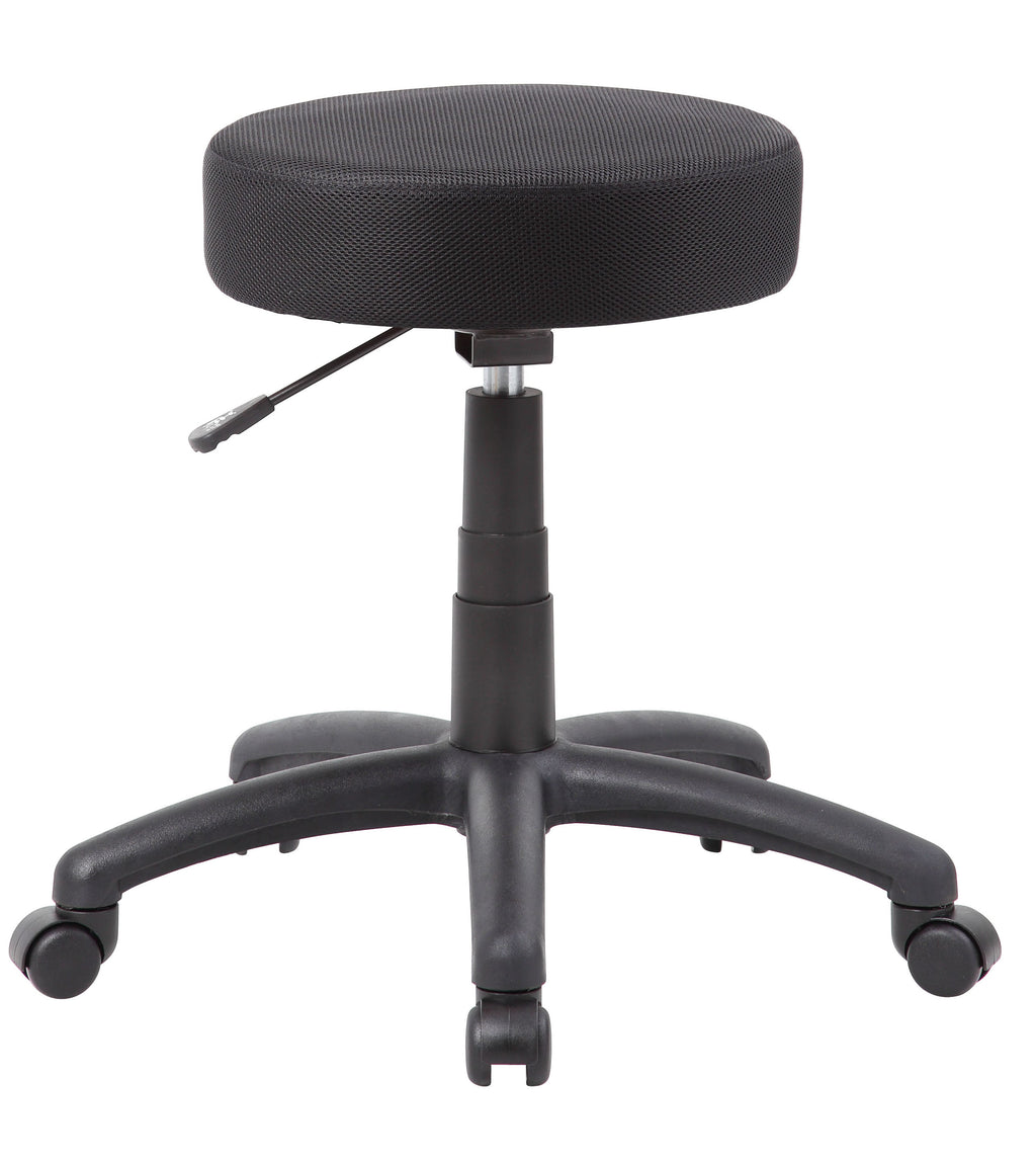 The compact and strong DOT stool in black is made with functionality and comfort in mind. It is designed with a breathable mesh seat and a 25 inch nylon base with 2 inch nylon dual wheel castors for a smooth roll. The armless, backless stool provides a pneumatic gas lift mechanism for adjustable height options, making this a great fit for most any desk or office and gives you a height range of 18 and 23 inches.