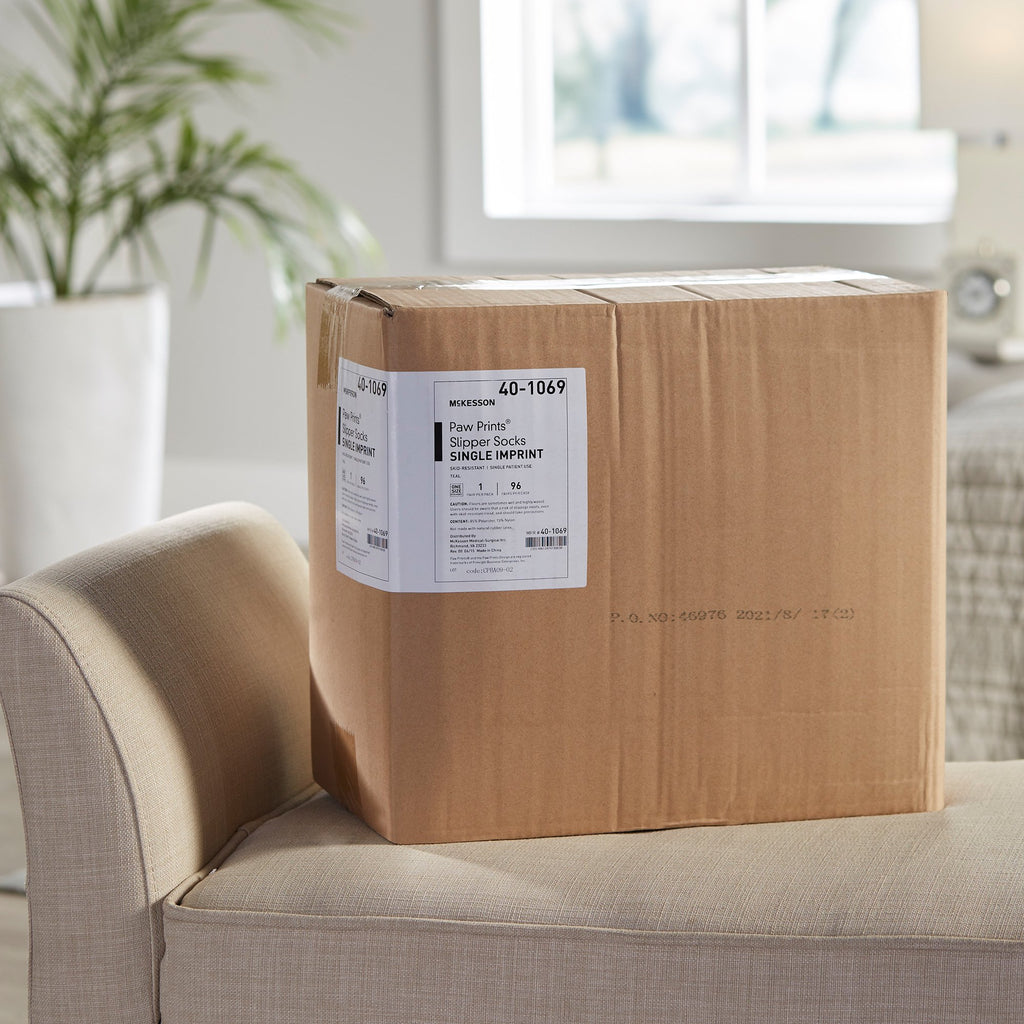 McKesson Paw Prints® Slipper Socks Unisex Adult One Size Fits Most Single Tread Single Patient Use Teal (475019_CS) 96/CS