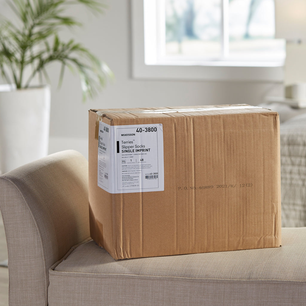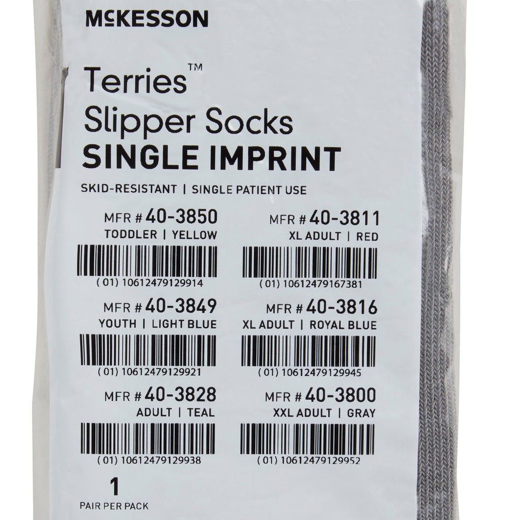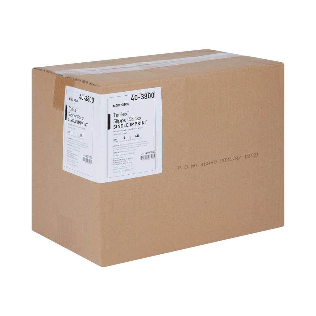 McKesson Terries™ Slipper Socks Unisex Adult 2X-Large Single Tread Single Patient Use Gray (504733_CS) 48/CS