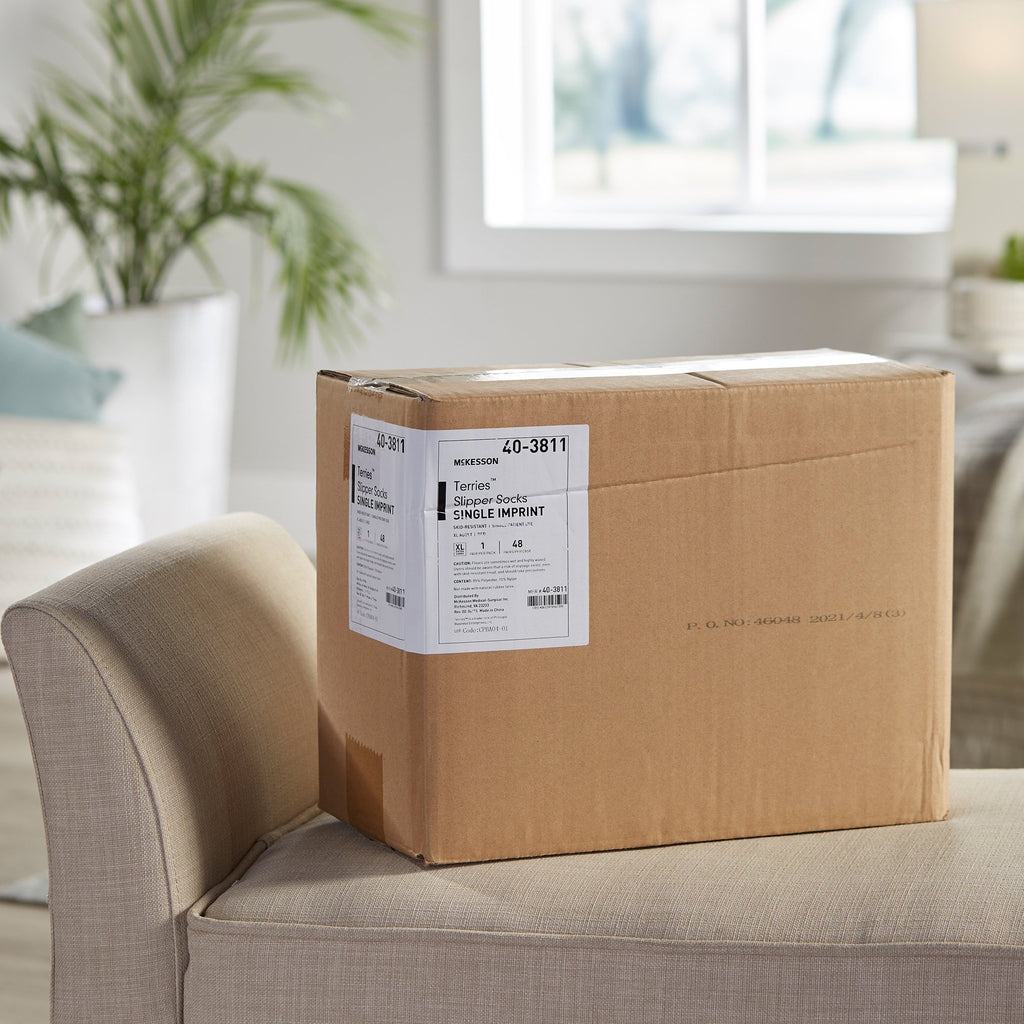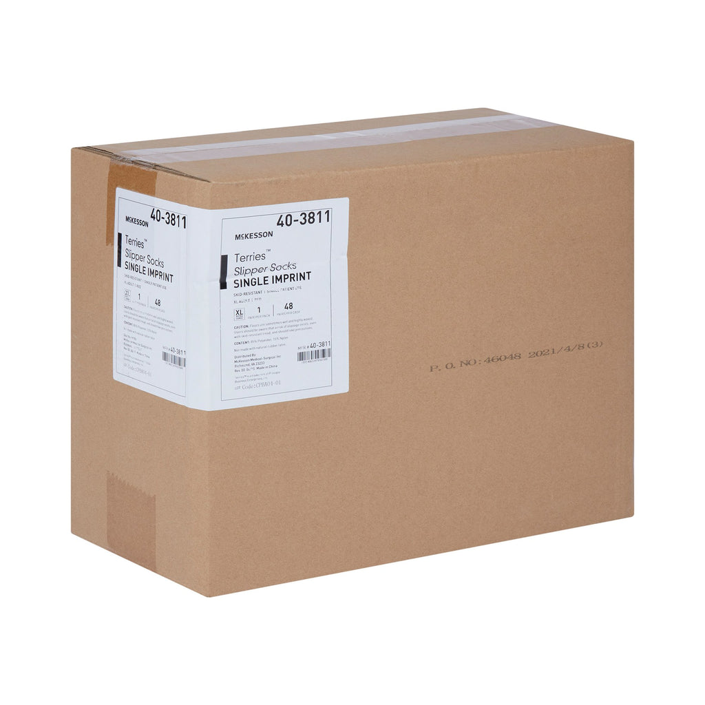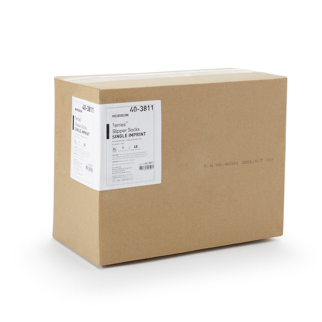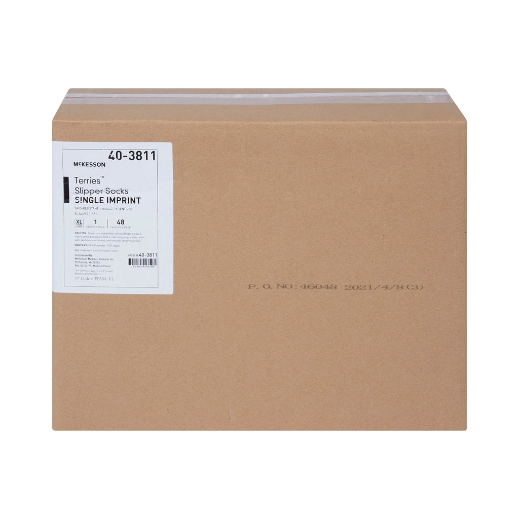 McKesson Terries™ Slipper Socks Unisex Adult X-Large Single Tread Single Patient Use Red (553041_PR) 1/PR