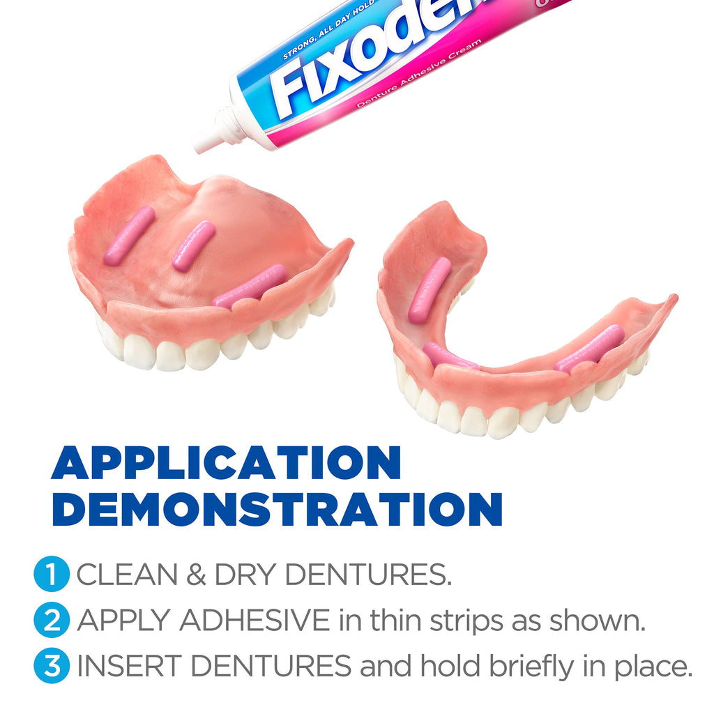 • Fixodent denture adhesive provides a powerful seal to keep food and bacteria from entering between dentures and gums