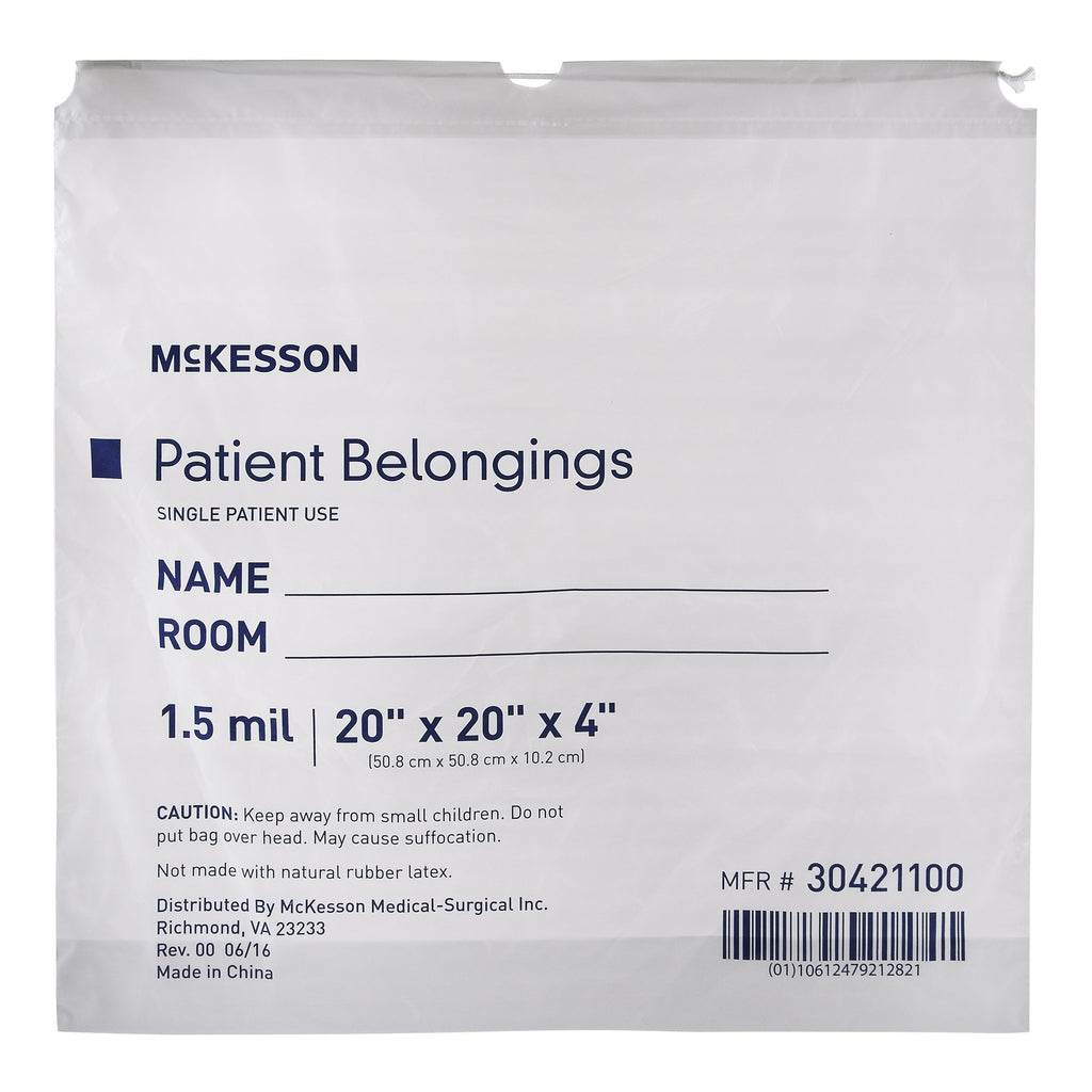 McKesson Patient Belongings Bag 4 X 20 X 20 Inch Polyethylene Drawstring Closure White (447753_CS) 250/CS
