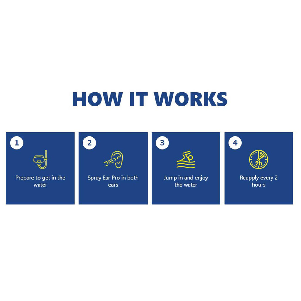 - Use Ear Pro's protective spray before swimming, diving, surfing or any other water activity.