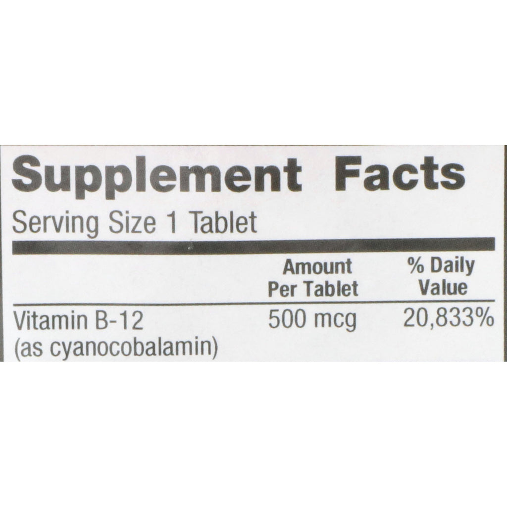 - 500 mcg of vitamin B-12 (as cyanocobalamin) per tablet