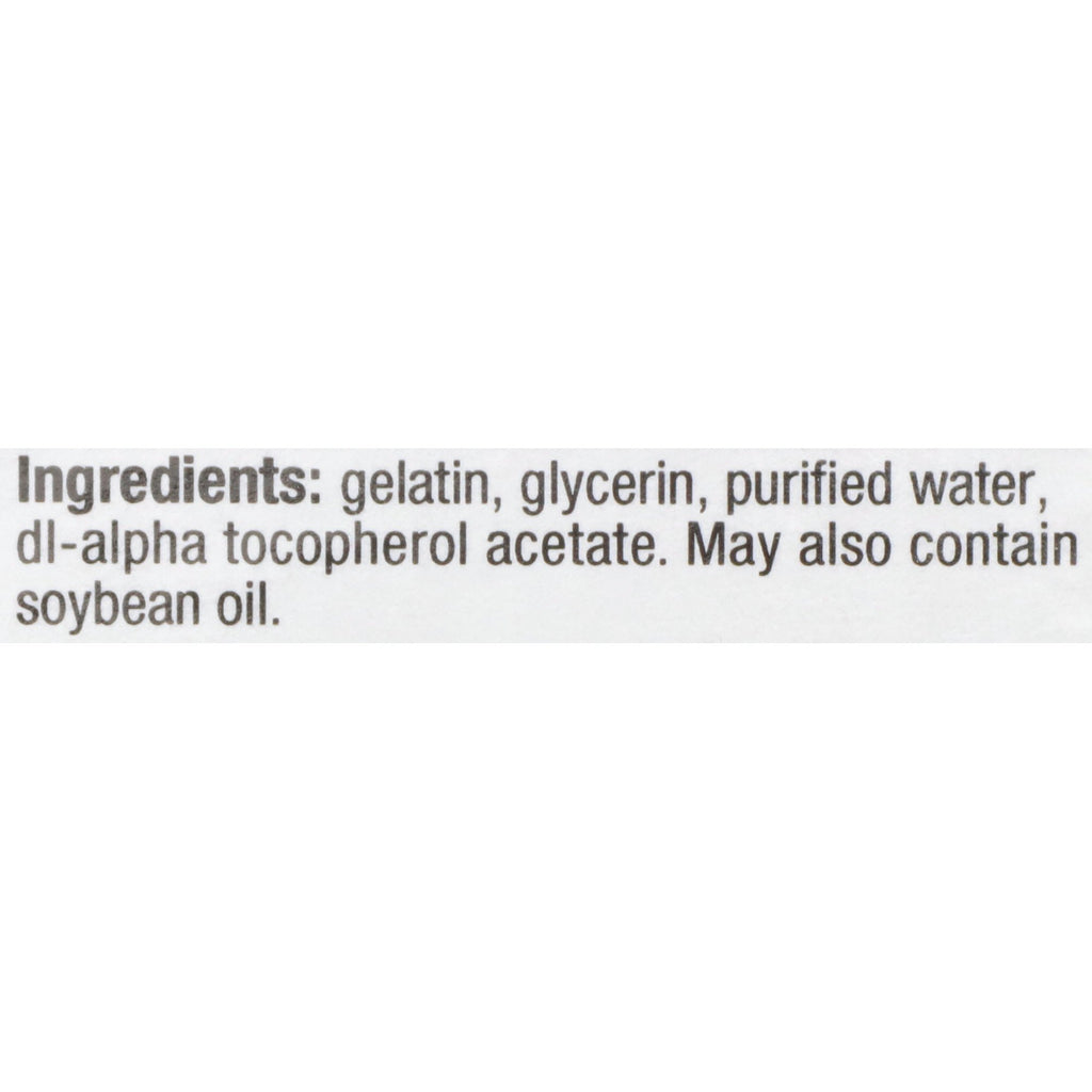 - 400 IU of vitamin E per softgel; there are 100 softgels in a bottle.