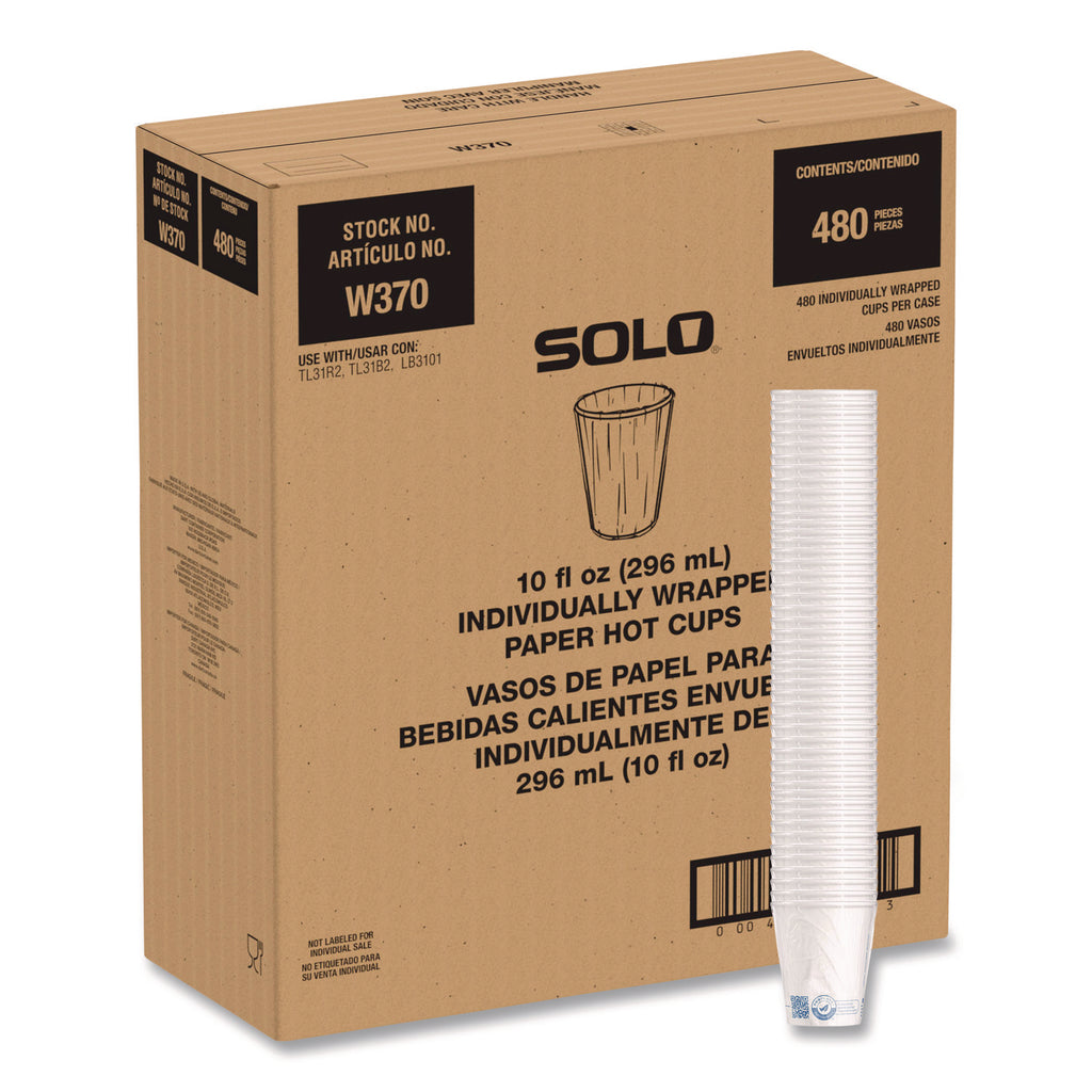 SOLO® Recycled Content PCF Paper Hot Cups, 10 oz, ProPlanet Seal, White/Blue, 480/Carton (SCCW370RCPLANET) Case of 480