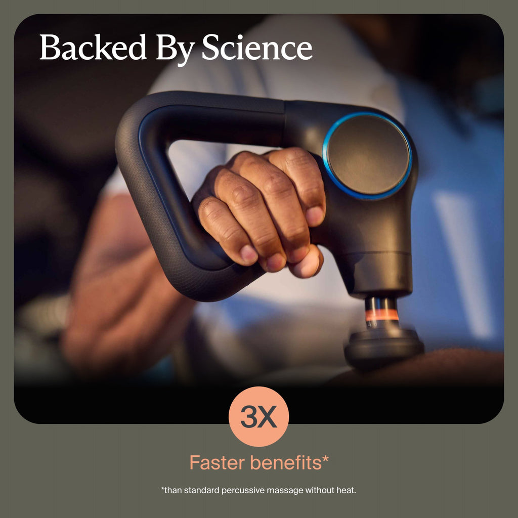 • Recover faster and more effectively with powerful massage plus heat: Three science-backed levels of heat speed up recovery, optimize warm-up, reduce soreness and relieve pain faster and more effectively than percussive massage alone.