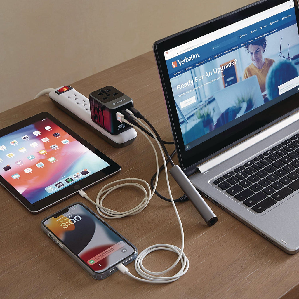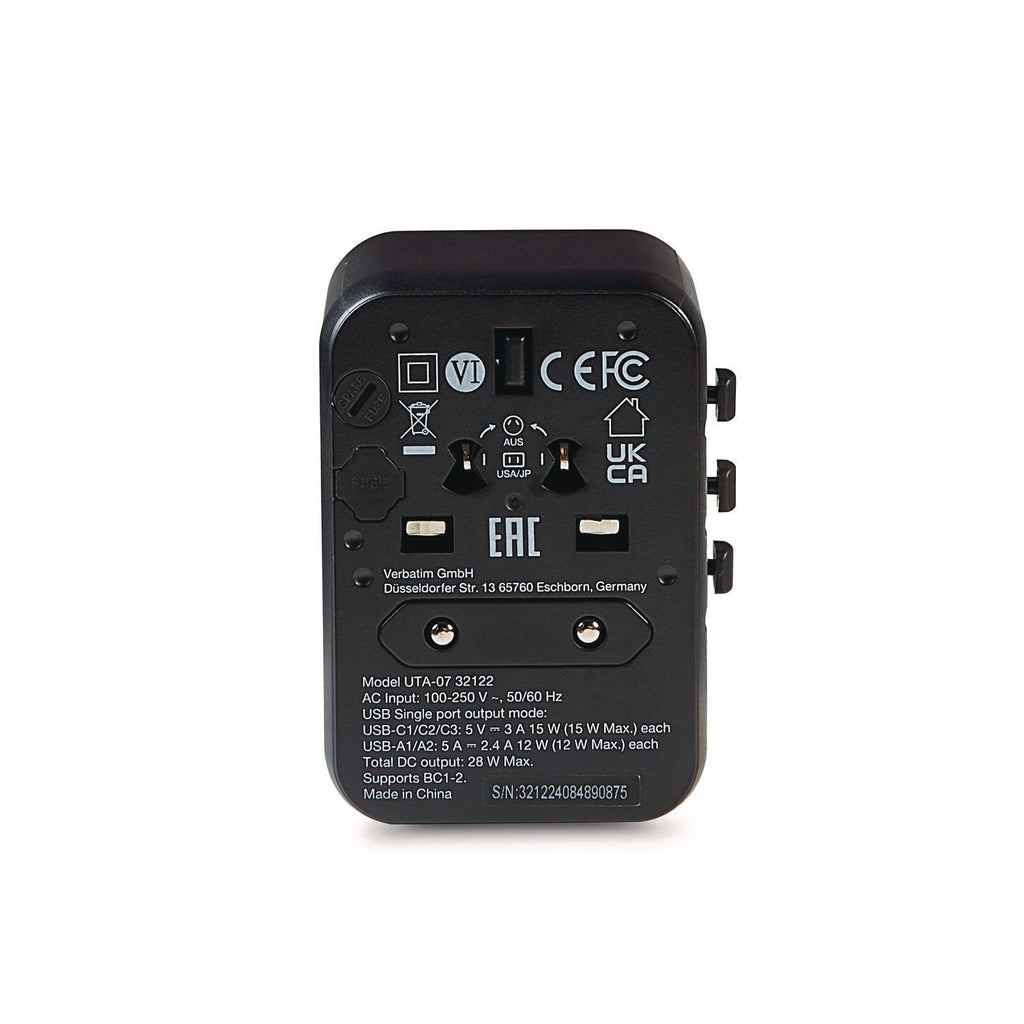 Verbatim® UTA-07 Universal Travel Adapter, (3) USB-A, (3) USB-C (VER32122) Each