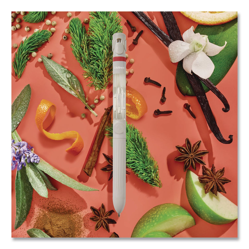 Keep your ideas flowing with a pen that diffuses delightful scents as you write. Pen features a 1 mm black ballpoint tip and an incredibly comfortable grip. Lifelines® was created to help people enhance their well-being in fast, effortless and fun ways. Meet the tools designed to help you calm your mind and boost your mood—anytime, anywhere. These essential oil blends were created for an aroma experience using pure essential oils and botanicals sourced from around the globe. Free from parabens, phthalates and dyes. The perfect gift for the person who has everything. Great for teachers, college students, family, friends or colleagues.
