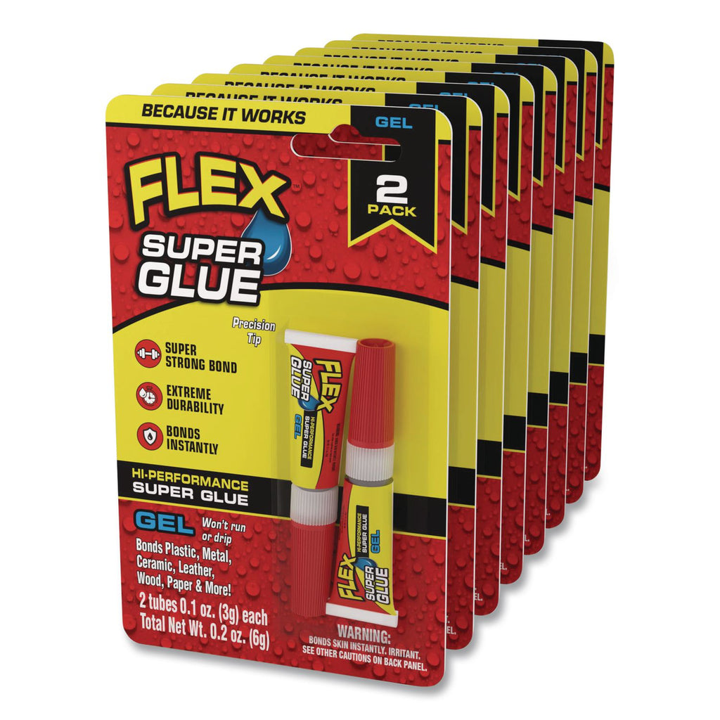 Flex Seal Products® Flex Super Glue, Precision Tip, Gel, 0.1 oz, Dries Clear, 2/Pack, 8/Carton (FSGSGGEL2X3) Case of 8
